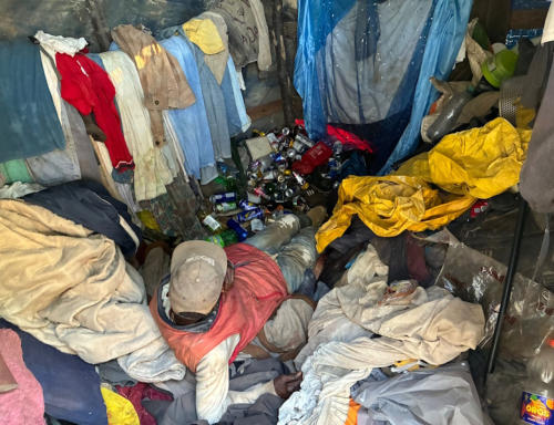 in einem Zeltverschlag haust und „den die Welt vergessen