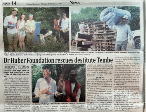 Vielen Dank euch allen für eure Unterstützung, den Menschen in Eswatini zu helfen. Manchmal hört man Kommentare wie „Hilfe für Afrika – das ist